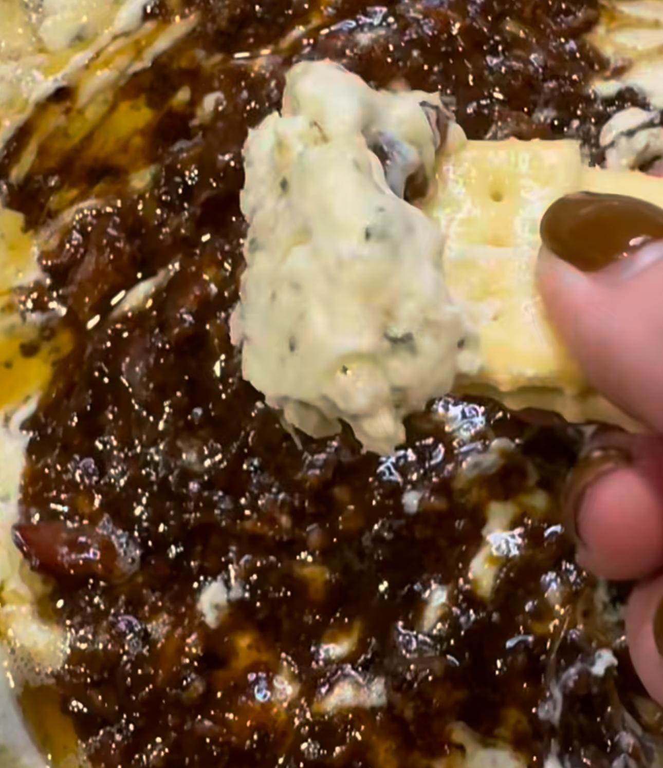 This easy Thanksgiving appetizer combines Boursin cheese with a flavorful bacon and maple syrup topping, served with bread or crackers.